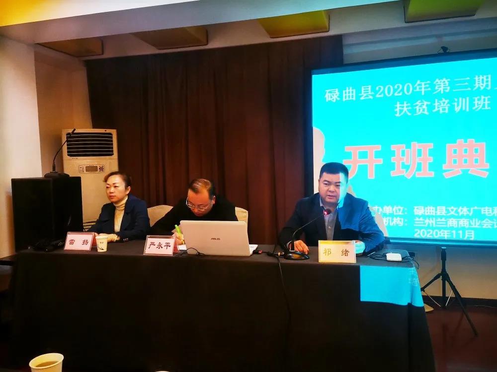 2020年11月7日,由碌曲县文体广电和旅游局主办,兰州兰商商业会计学校承办的“碌曲县2020年第三期乡村旅游扶贫培训班(成都)”在四川大学望江校区科华苑五楼顺利开班,参加开班仪式的领导有:碌曲县文体广电和旅游局副局长严永平、四川旅游学院教授雷扬、兰州兰商商业会计学校校长祁绪,来自碌曲县各乡镇的旅游扶贫分管干部和四十多家农家乐经营人员共59人参加了培训。培训开班仪式由兰州兰商商业会计学校校长祁绪主持。