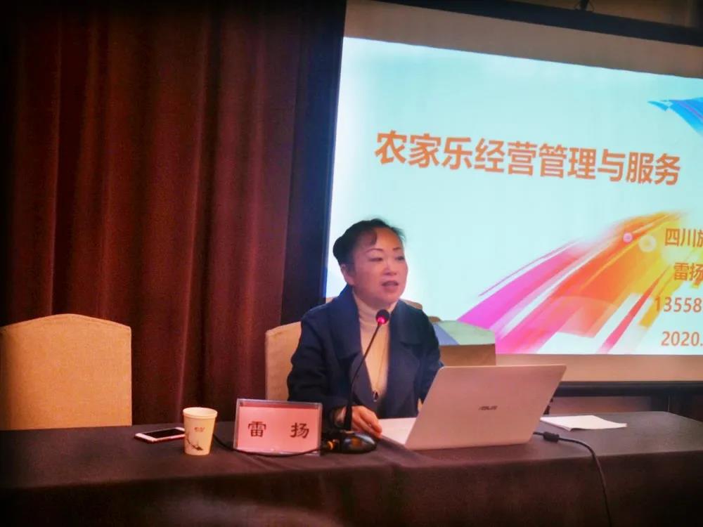开班仪式结束后,四川旅游学院雷扬教授以“农家乐经营管理与服务”为课题进行授课,针对农家乐经营管理、服务规范等内容开展系统性、针对性的培训。
