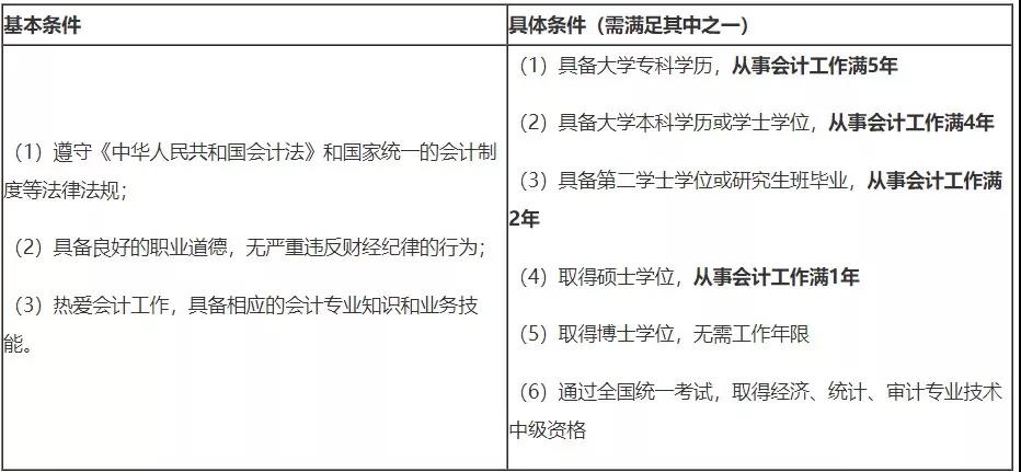 2021年报名简章还未公布,大家先参考2020中级会计师考试报名条件: