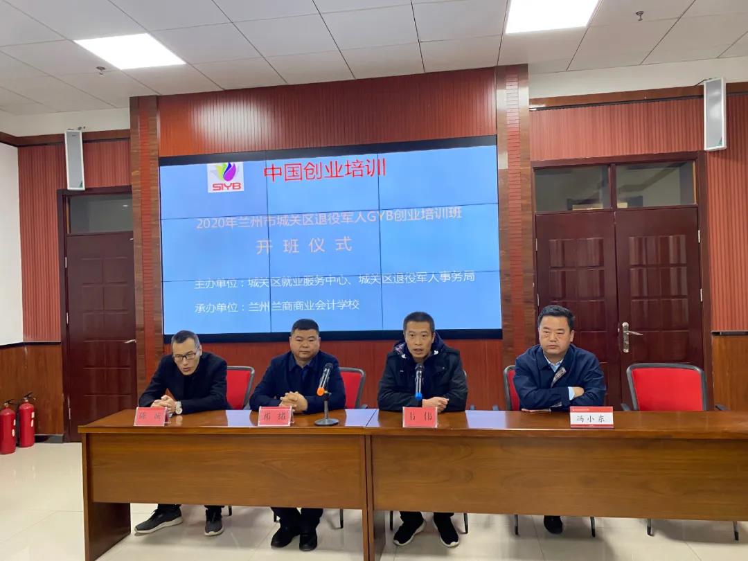11月18日,由兰州市城关区就业服务中心、城关区退役军人事务局主办,兰州兰商商业会计学校承办的2020年兰州市城关区退役军人GYB创业培训班开班典礼顺利举行,兰州资源环境职业技术学院主任冯小东、城关区退役军人事务局科长韦伟、兰州兰商商业会计学校校长祁绪、兰商特聘创业培训教师陈诚以及参加培训的三十名学员参加了开班典礼。
