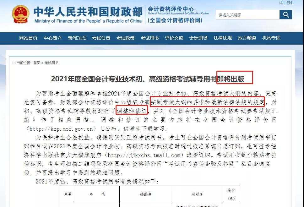 2021年初级教材变动预测