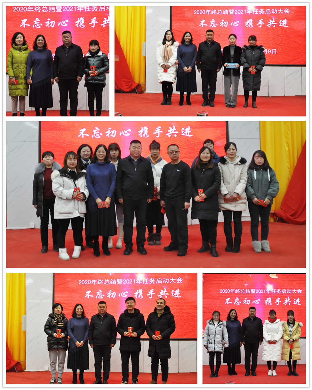 会议第三项,由集团财务部潘总监宣读2020年年终奖励名单,董事长祁绪亲自为为集团教职工发放2020年年终奖金。