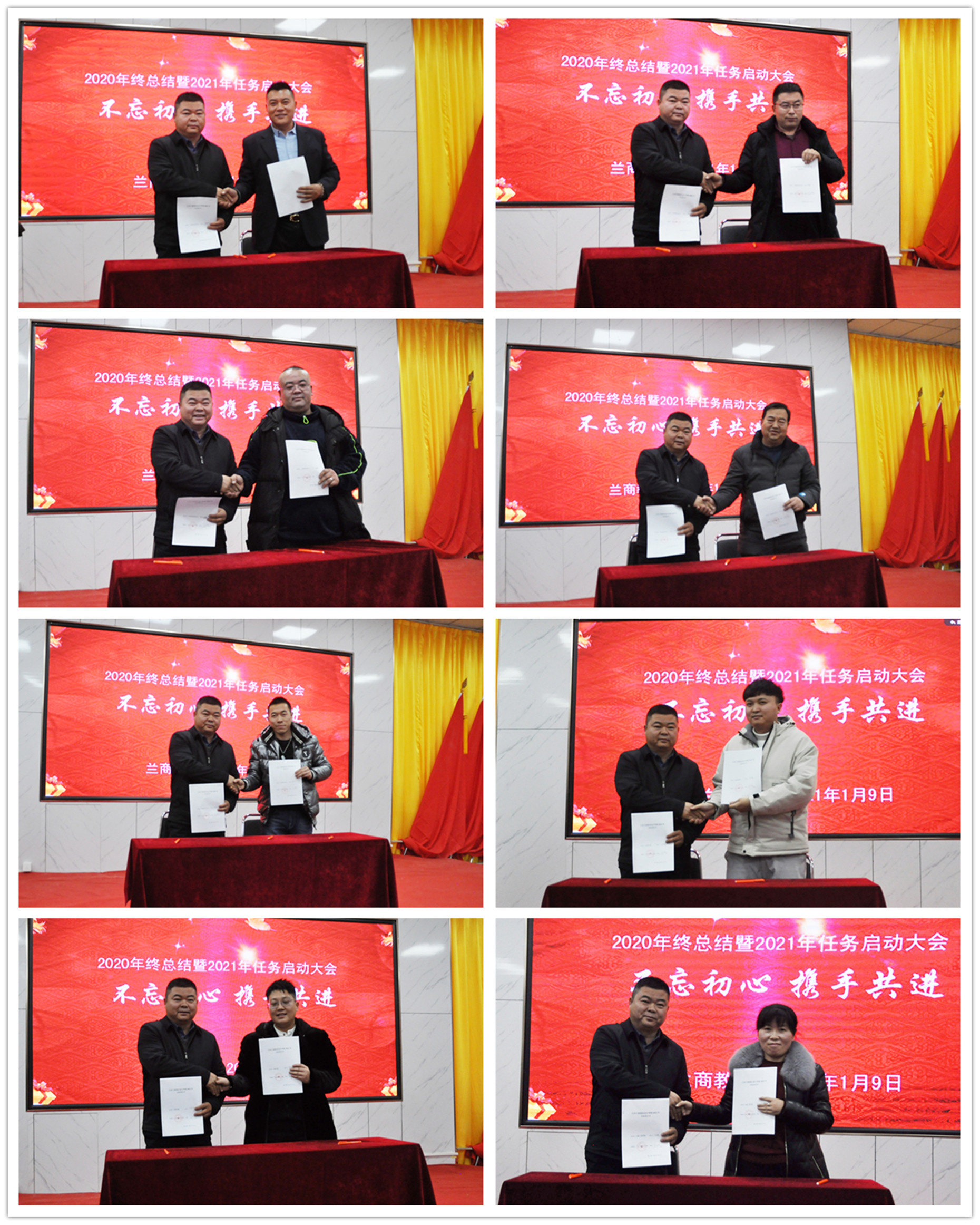 会议第五项,董事长祁绪与集团各部门主任签订了2021年的目标责任书,进一步明确了各部门的发展方向和奋斗目标。