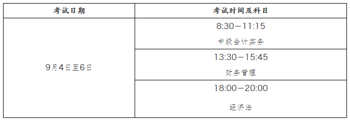 (一)中级会计资格考试于2021年9月4日至6日举行,共3个批次,各科目具体考试时间如下: