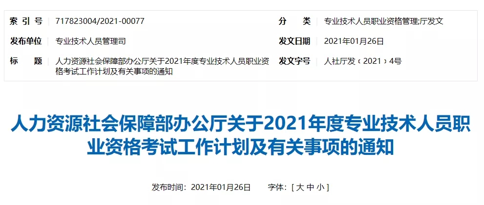 重磅!2021年专业技术人员职业资格考试时间表公布!