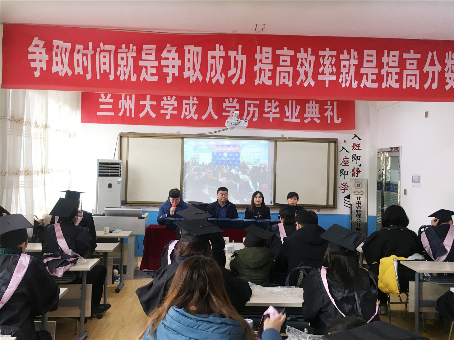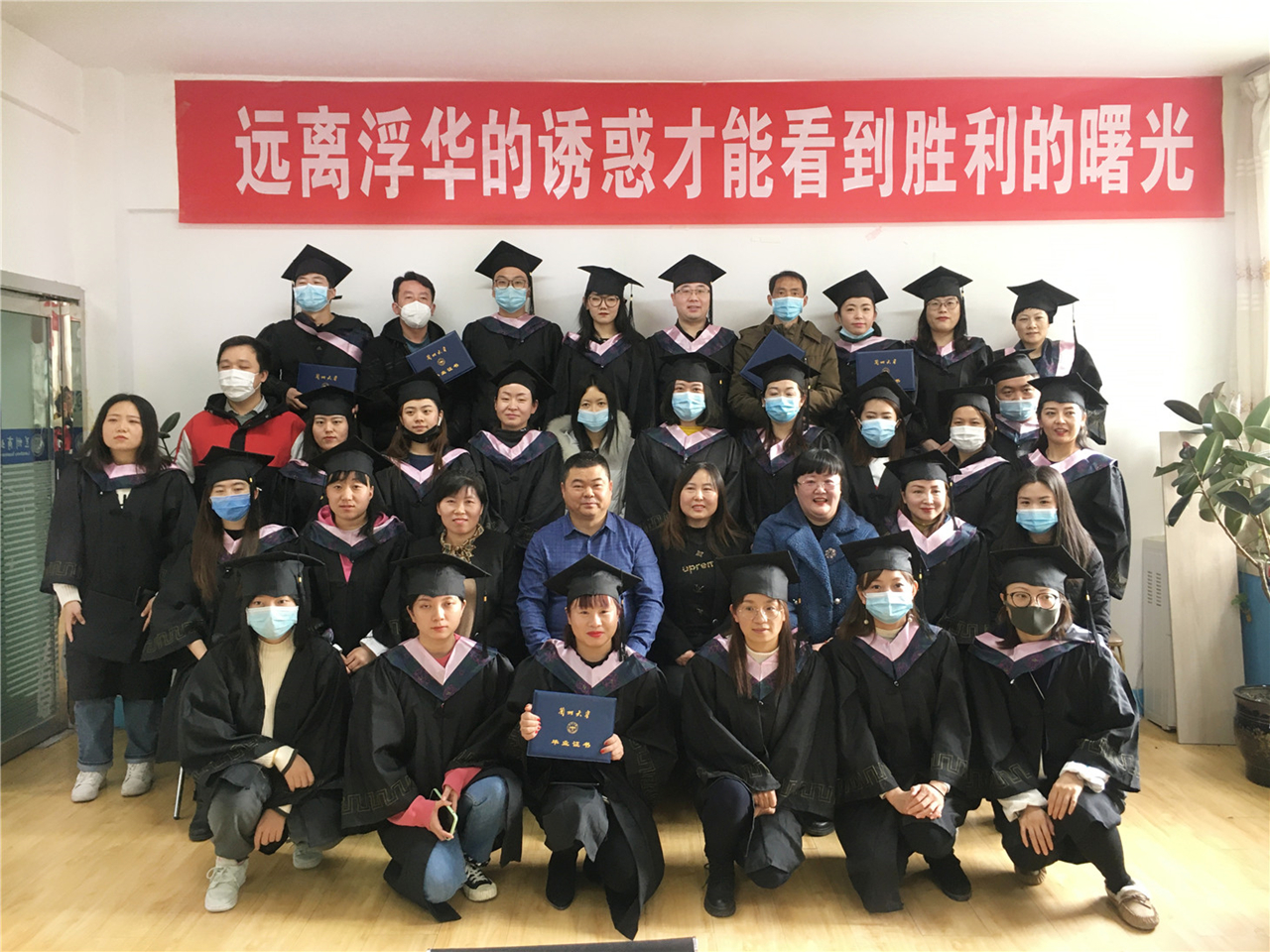 兰商集团于2021年1月30日在双城门校区隆重举行了“兰州大学成人学历毕业典礼”活动,兰商集团董事长、兰州商业会计学校校长祁绪、教务部主任刘小红、双城门分校校长赵雪琴及兰商集团顺利获取兰州大学网络教育成人学历毕业证的学员参加了此次活动,活动由教务部李捷老师主持。