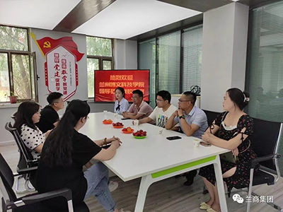 其次由兰州博文科技学院外语学院刘院长对学校的发展历史和近年招生合作方向做简单的分享,并对兰商集团实训基地的建成进行了展望,随后双方进行了分享和交流。