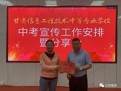 会议上,兰商集团招生办王能亮主任对于全省各地市、县中考考点宣传划分、安排进行宣读。
