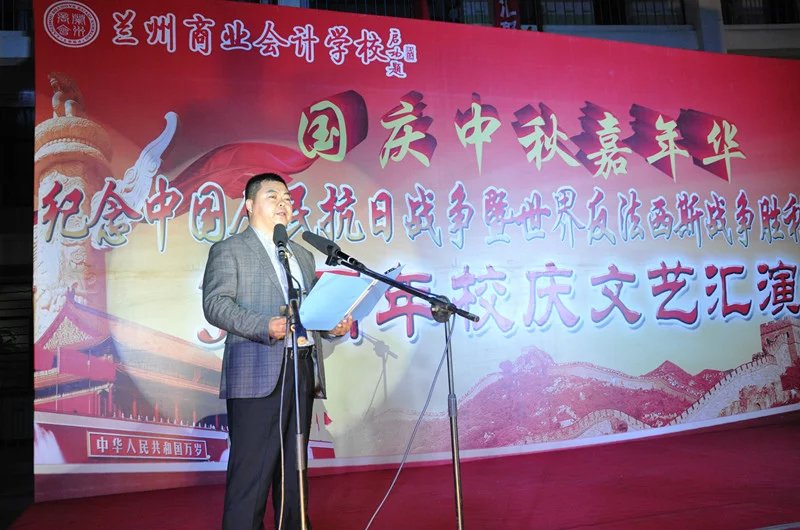 兰州商业会计学校校长在文艺汇演上致辞,回顾了建国以来,我国取得的辉煌巨变,并殷切期望全校学生能够珍惜学习得机会,在完成学业的同时,要面向未来、面向世界、面向现代化,希望全校教职员工能够再接再厉、重视教育、再创辉煌,同时,校长也对学校未来的发展提出了美好的祝愿和期望。