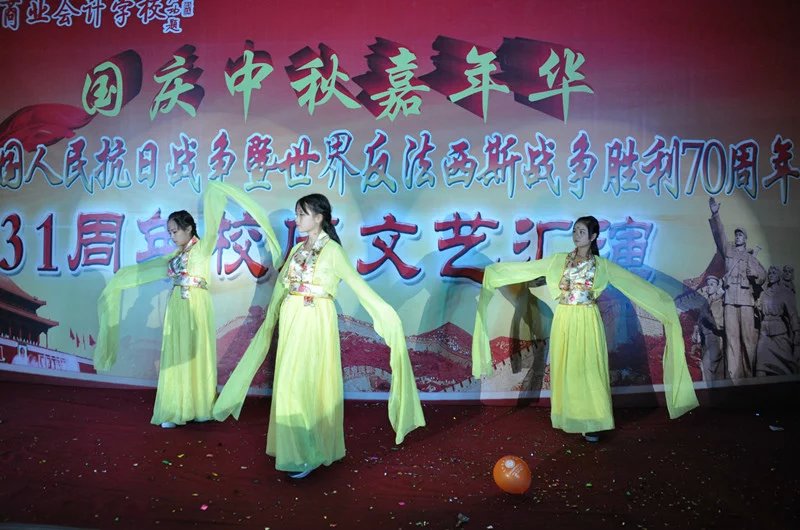 2015年9月25日下午,兰州商业会计学校建校31周年庆典暨国庆、中秋文艺汇演在五泉校区举行,兰州商业会计学校校长祁绪、副校长杨发中及学校领导、各部门主任应邀出席了文艺汇演。兰州商业会计学校全体生生参加了文艺汇演,歌唱祖国、感恩学校、舞动青春,倾情演绎了对祖国、对母校的热爱与眷恋之情。晚会以丰富精彩的内容,强烈的视觉和听觉冲击为大家呈现了一席文艺娱乐大餐。