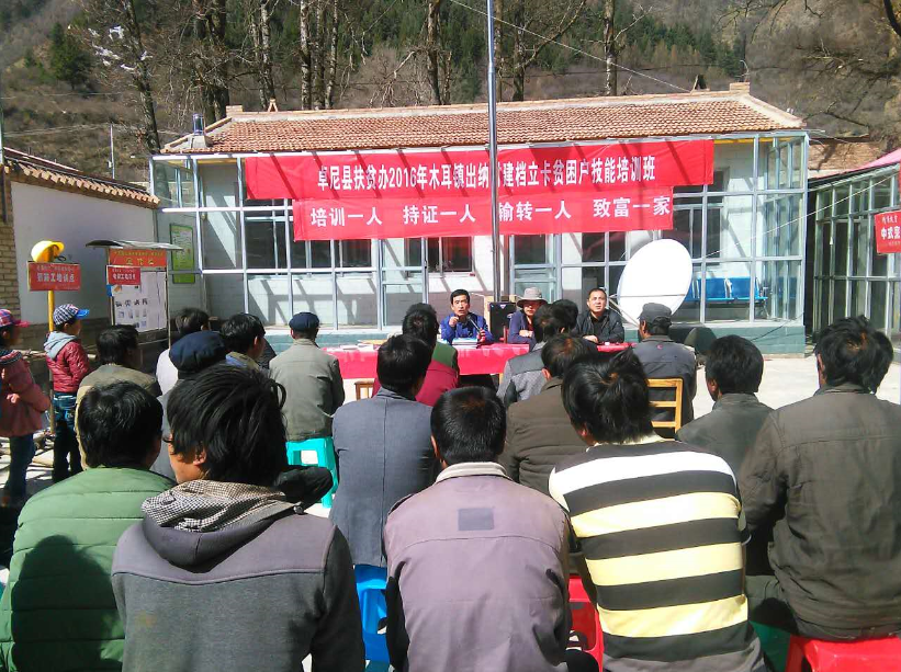 2016年4月3日上午,兰州商业会计学校一行15人,分别在卓尼县木耳镇出纳村委会和七车村委会举办第三期与第四期建档立卡贫困户普通劳务技能培训开班仪式! 参加开班仪式的领导有:木耳镇人民政府魏镇长,出纳村包村领导王卓林,出纳村委会主任全班玛达尼;七车村包村领导张彦海,七车村委会大队长全卫君,兰州商业会计学校第三期组长白乐夫、第四期组长姚中华等相关负责人一并参加开班仪式。在开班仪式上木耳镇魏镇长与我校负责人详细解答了培训与劳务输转就业平台的重要意义和目的,切实做好贫困户建档立卡工作,助力精准扶贫脱贫工作。