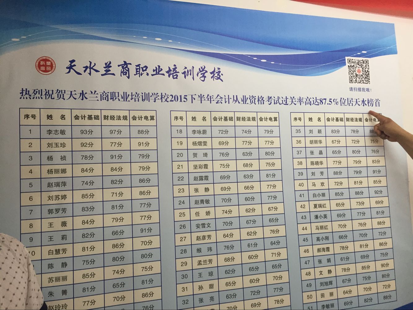 2016前半年的会计从业考试又喜传捷报,会计从业考试单科成绩位居天水第一,会计基础最高分94分,财经法规最高成绩92分,会计电算化96分,这些骄人成绩的取得都离不开社会各界对我校的支持和认可!
