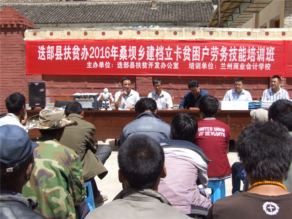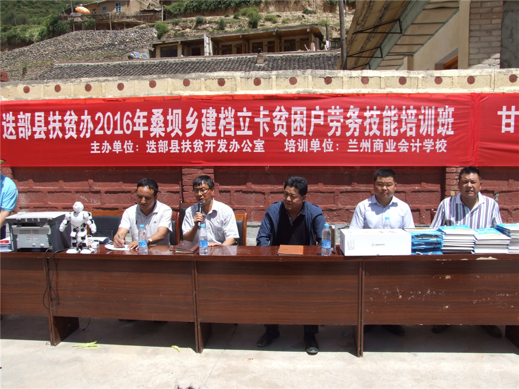 【兰商快讯】 2016年7月26日,甘南州迭部县扶贫办2016年建档立卡贫困户劳务技能培训班第一期在桑坝乡举办,参加此次开班典礼的领导有:迭部县委常委副县长金国正,县扶贫办主任王玉国,副主任鲁永杰,桑坝乡政府乡长闹秀才让,扶贫站长杨志强,兰州商业会计学校校长祁绪、副校长杨发中等。