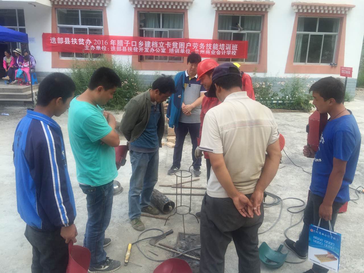 【兰商快讯】 2016年8月11日下午,由迭部县扶贫办主任王玉国引领迭部县县委书记仁青东珠、挂职县委副书记王小宁、县委办主任耿态、县委农办主任杨飓、财政局局长赵瑞九、发改委主任杨海强、统计局局长马育宏、纪委副书记陈劲松、组织部副部长东才让多杰、扶贫办副主任鲁永杰、住建局副局长张学成等领导亲临迭部县腊子口乡精准扶贫劳务技能培训现场,检查兰州商业会计学校的培训过程和培训成效,电视台记者全程跟踪报道。