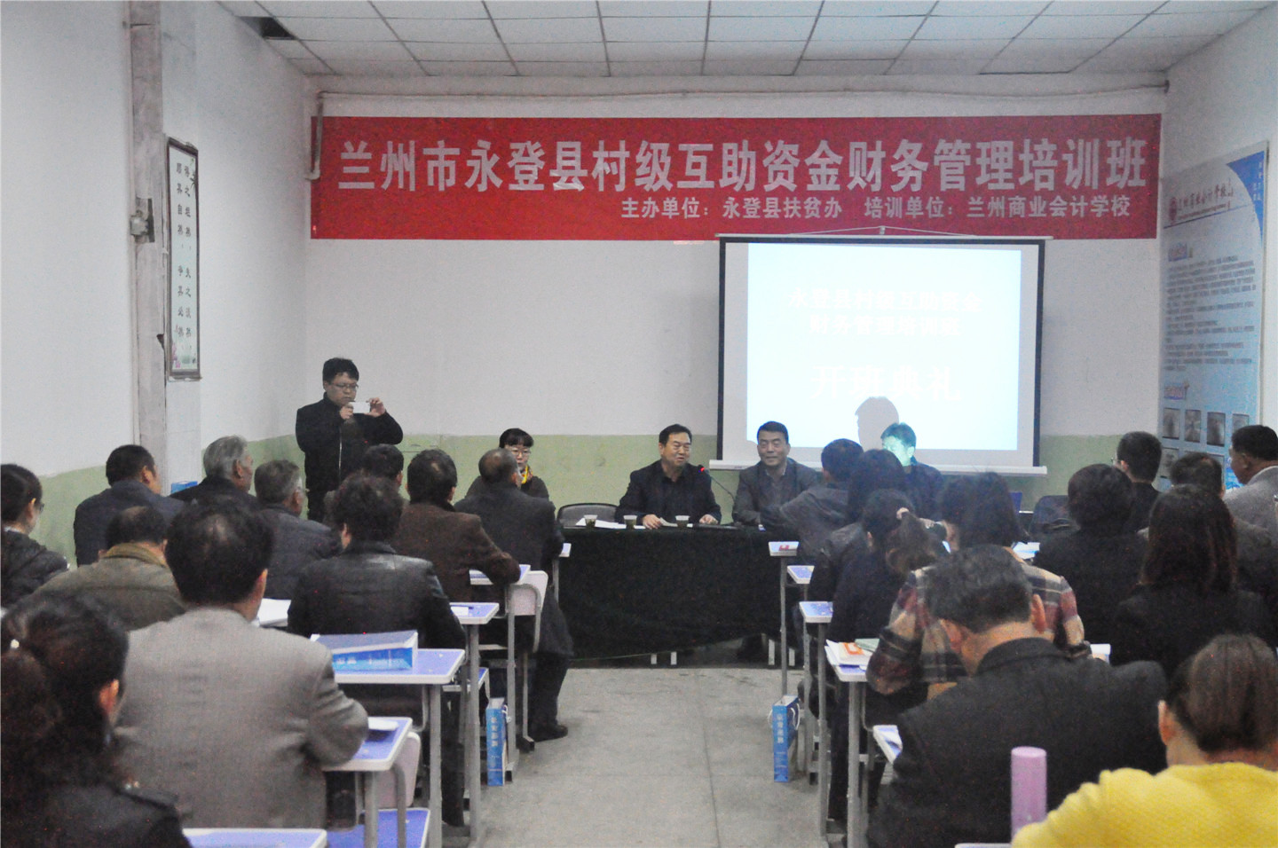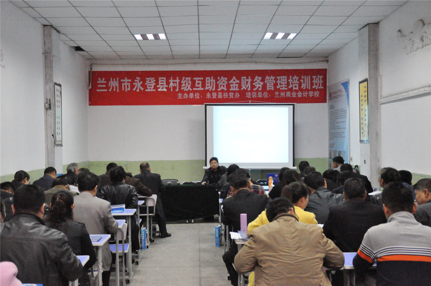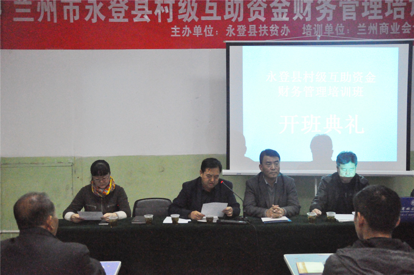 第一期培训班于10月26日在兰州商业会计学校五泉校区举行,永登县辖村级互助资金财务管理人员64人参加此次培训,永登县扶贫办副主任火高暖、兰州商业会计学校技能培训部主任刘继勇、教务部主任李婕等领导出席了此次培训开班仪式,开班仪式由兰州商业会计学校技能培训部主任刘继勇主持。