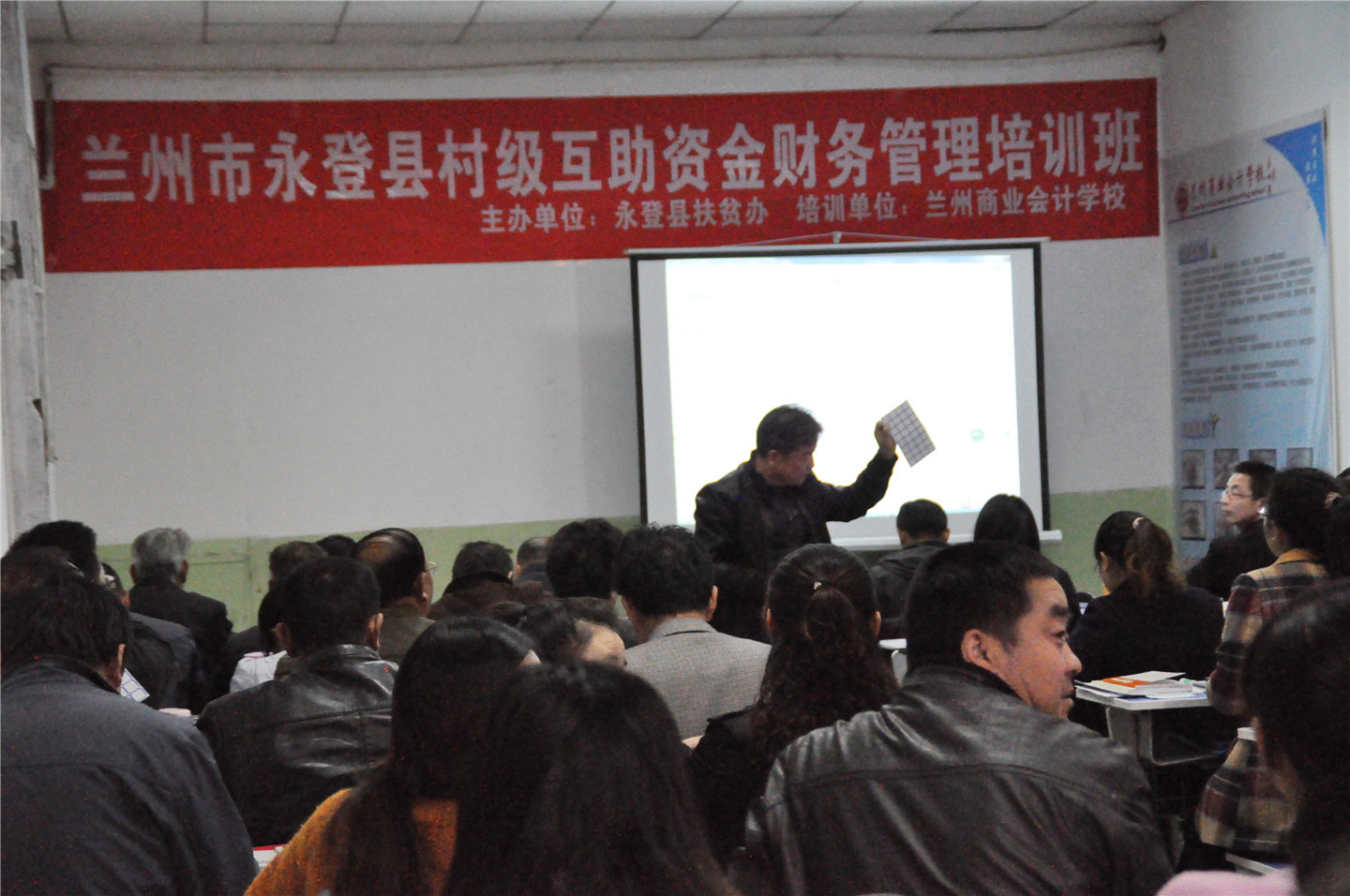 为进一步推动永登县村级互助资金规范、健康、有序发展,切实提高互助资金协会财务管理人员业务水平,有效防范资金风险,受永登县扶贫办委托,兰州商业会计学校特举办永登县村级互助资金财务管理人员业务培训班,对永登县16个乡镇200个村从事村级互助资金财务管理的230多人进行培训,培训将分4-5期完成。培训主要涉及互助资金管理的实际工作内容、工作流程及账务处理水平等内容。