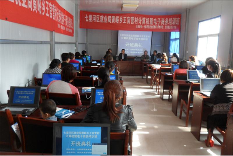 为了进一步依托电子商务平台,提高富余劳动力职业技能水平和市场求职竞争力,助推精准扶贫和小康村建设工作,全面提升农村富余劳动力的技能水平和创业水平,兰州商业会计学校受兰州市七里河区就业服务局委托,先后于2016年9月19日至9月25日、10月19日至10月25日,分两期对兰州市七里河区黄峪乡王官营村的90名“小康村”从事电子商务及务工人员进行了以计算机及电子商务为主要内容的就业技能培训。