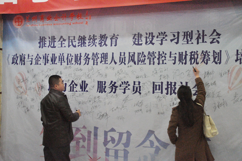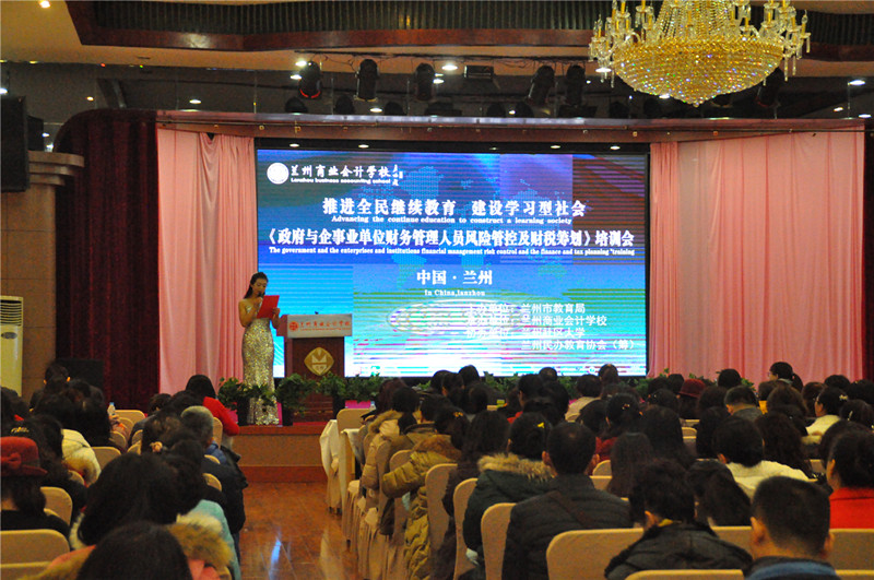 兰州商业会计学校于2016年11月24日下午14:00在兰州市新胜利宾馆一楼会议厅隆重举办《政府与企事业单位财务管理人员风险管控及财税筹划》培训会,来自兰州市多家政府单位及企事业单位的三百多名领导、法人、会计、财务工作人员参加了此次公益培训会。整个公益培训会由兰州商业会计学校主办并组织开展培训。