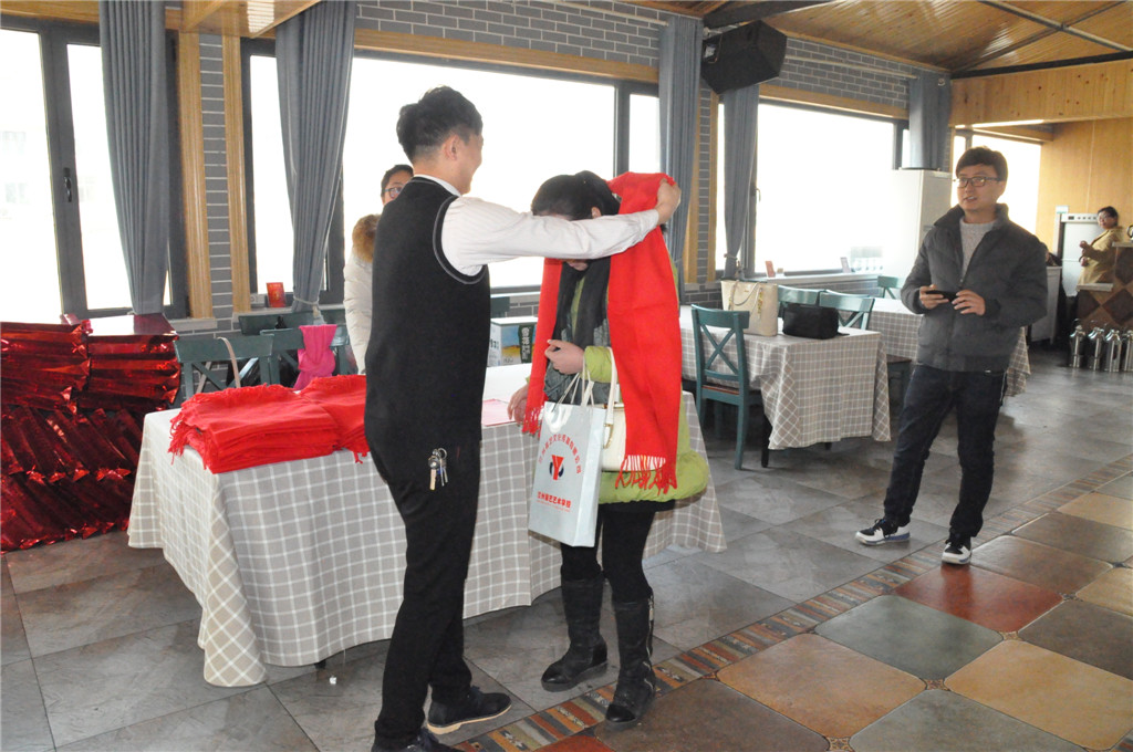 (给老师敬献红围巾——象征红红火火)