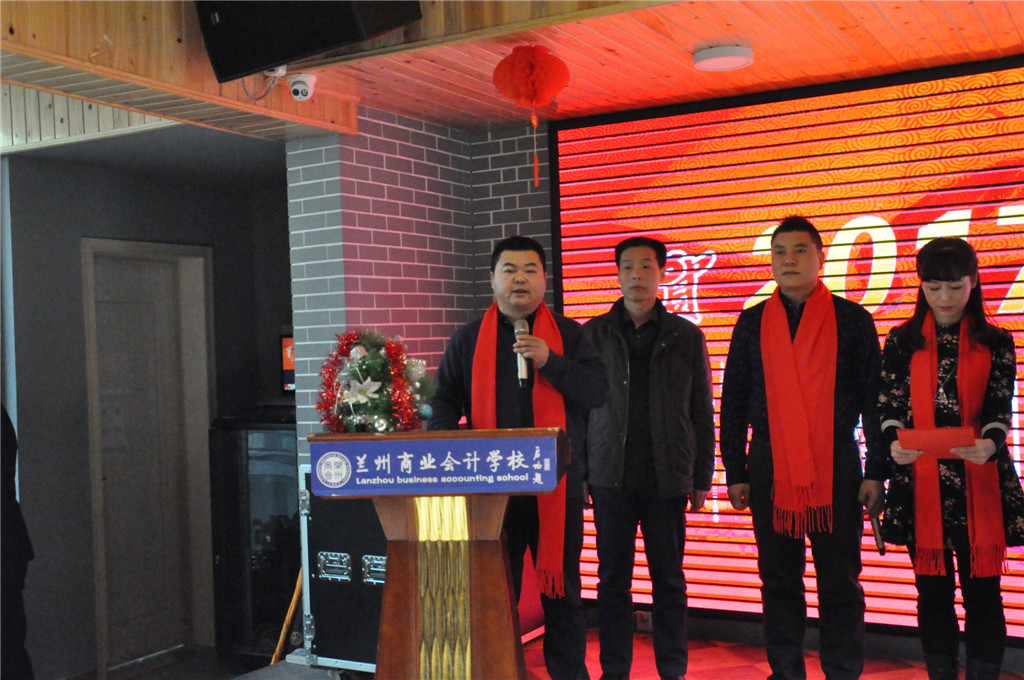 兰州商业会计学校校长祁绪在会上致辞,兰州商业会计学校领导班子及各部主任在主席台上亮相。首先,祁校长代表兰州商业会计学校,向参加本次大会的领导、嘉宾及全体教师员工们表示衷心的感谢和美好的祝愿,并通过他们向各位的家人送去新春的问候和新年的祝福。同时,祁校长回顾了兰州商业会计学校2016取得的成绩和经验,展望了2017年学校的发展前景和奋斗目标,详细阐述了兰州商业会计学校2017年工作计划,祁校长指出,兰州商业会计学校2017年要进一步深化改革,推进学校教学模式及工作思路不断创新,将2017年定为学校教学质量提高年,进一步提高学校教学质量,加强教务管理,促进学校各项工作全面发展。祁校长还阐明了2017年的具体工作计划,并表达了与参会人员深度合作的美好意愿,希望与在场各位精诚团结、共同努力、开拓美好未来!