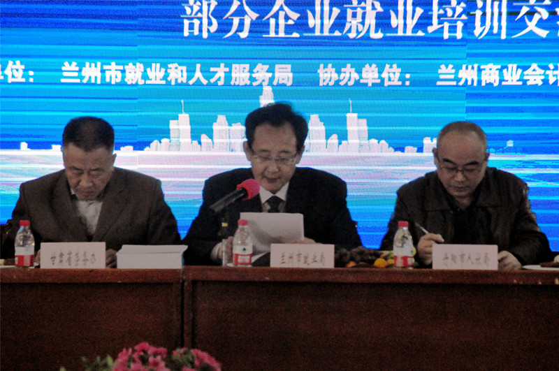 会议第一项,由兰州市就业与人才服务局副局长张建瑞同志致辞,张副局长分析了当前的就业形势,对兰州市劳动力就业问题提出了深刻的见解。他强调,解决就业问题,政府要落实好积极的就业政策,整合市场资源,畅通就业渠道,为劳动力提供有力的保障和服务,引导富余劳动力面向市外、省外就业;企业要发挥好其市场作用和社会效益,同时要加强职业技能培训,培养更多适应经济社会发展和市场需求的人才。 会议第二项,承办单位兰州商业会计学校校长祁绪在交流会上致辞,祁校长对各政府及企事业单位领导的到来表示热烈的欢迎和由衷的感谢,祁校长介绍了本次活动的目的,同时阐述了学校与东部沿海发达城市的相关单位及企业建立合作关系的构想,提出了2017年签约举办冠名班,培训与市场接轨的人才的培养计划。祁校长指出以市场需求为导向,充分利用资源优势,有重点、针对性地开展专项培训,提高就业人员的职业技能是学校今年工作的重要方向。(市就业局张副局长发言) (兰州商业会计学校校长祁绪发言)