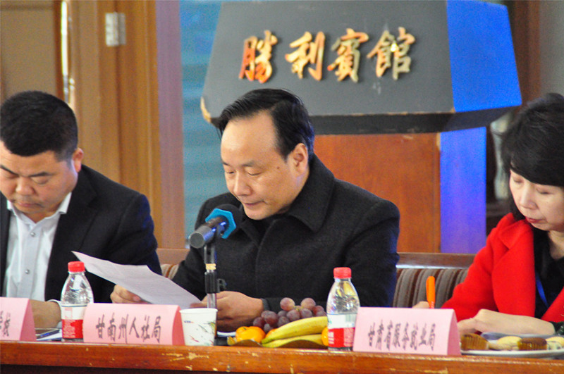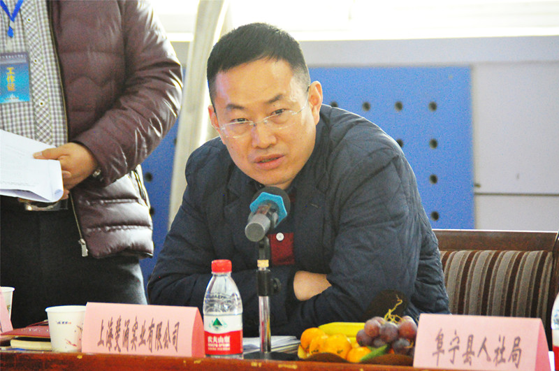 会议第六项,甘南州劳务办专职副主任朱全德同志发言,朱副主任介绍了甘南州务工人员分布情况、工种、培训、输转等基本情况,阐述了甘南州近年来在解决劳动力就业、技能培训、劳务输转方面所做的努力和取得的成绩,分析了甘南州劳务人员的优势,同时也明确了甘南州进一步拓展就业市场、解决就业及劳务输转问题的方向。 会议第七项,上海斐涌实业有限责任公司国瑞峰董事长发言,国总介绍了斐涌实业有限责任公司的基本情况、主要业务和发展历程,指明了解决务工人员就业的条件和渠道,阐明了加强政校企合作的必要性。国总指出要根据市场需求,建立校企长期合作机制,将企业课程引入学校,实现订单式培养,才能真正做到精准扶贫,切实加强、促进务工人员在企业的稳定度和在企业的成长。(甘南州劳务办专职副主任发言) (上海斐涌实业有限公司国总发言)