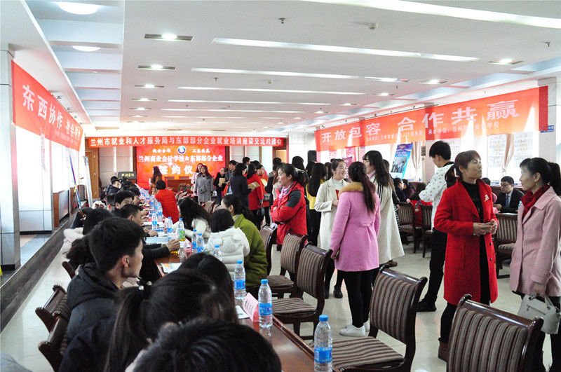 会议第八项,举行校企合作培训项目签约仪式,兰州商业会计学校与来自东部沿海地区的15家企业达成了冠名班培训项目的合作意向,现场签约5家企业,分别与江南造船厂、上海烹饪协会(上海花园饭店)、上海骏莱投资发展有限公司、江苏绿叶农化有限公司、北汽银翔汽车有限公司等签约电焊工、烹饪、酒店服务、农业技术、汽车维修等专业的冠名班各100名,总共签约冠名班培训900人。25日下午,兰州商业会计学校与参加招聘会的其他20多家企业签订了合作协议。(25日上午兰州商业会计学校签约冠名培训班项目<部分照片>)