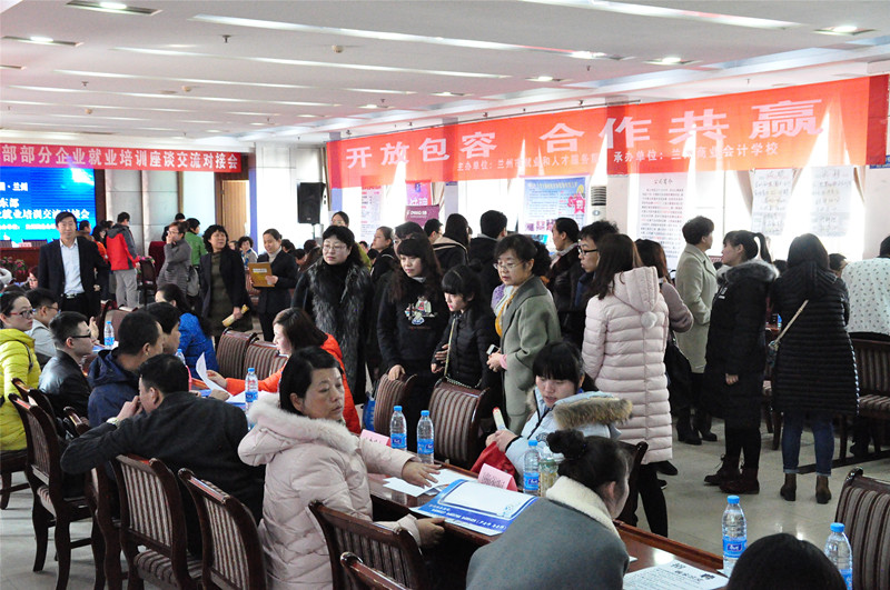 此次兰州市就业和人才服务局与东部部分企业培训就业交流对接会是政校企合作的新的开端,是群策群力、贯彻落实党和政府精准扶贫、精准输转、解决就业难题的新举措,通过政校企的紧密合作,架起沟通合作的桥梁,将市场的人才需求与学校的精准培训紧密结合起来,发挥好政府部门为解决就业输转问题的扶持、组织、服务功能,促进人才培养和流动,切实解决劳动力就业问题。(交流对接会现场) (招聘会现场)